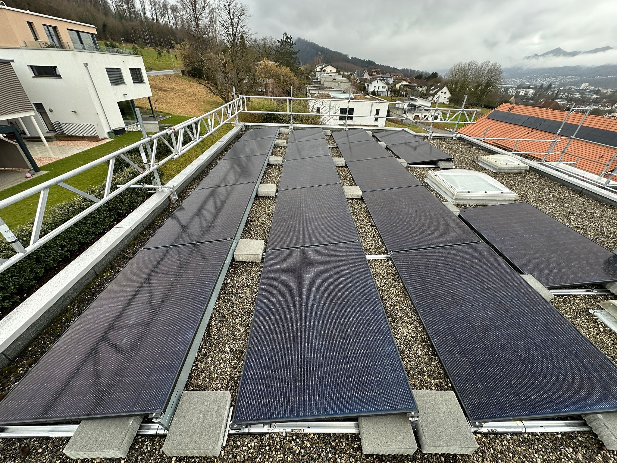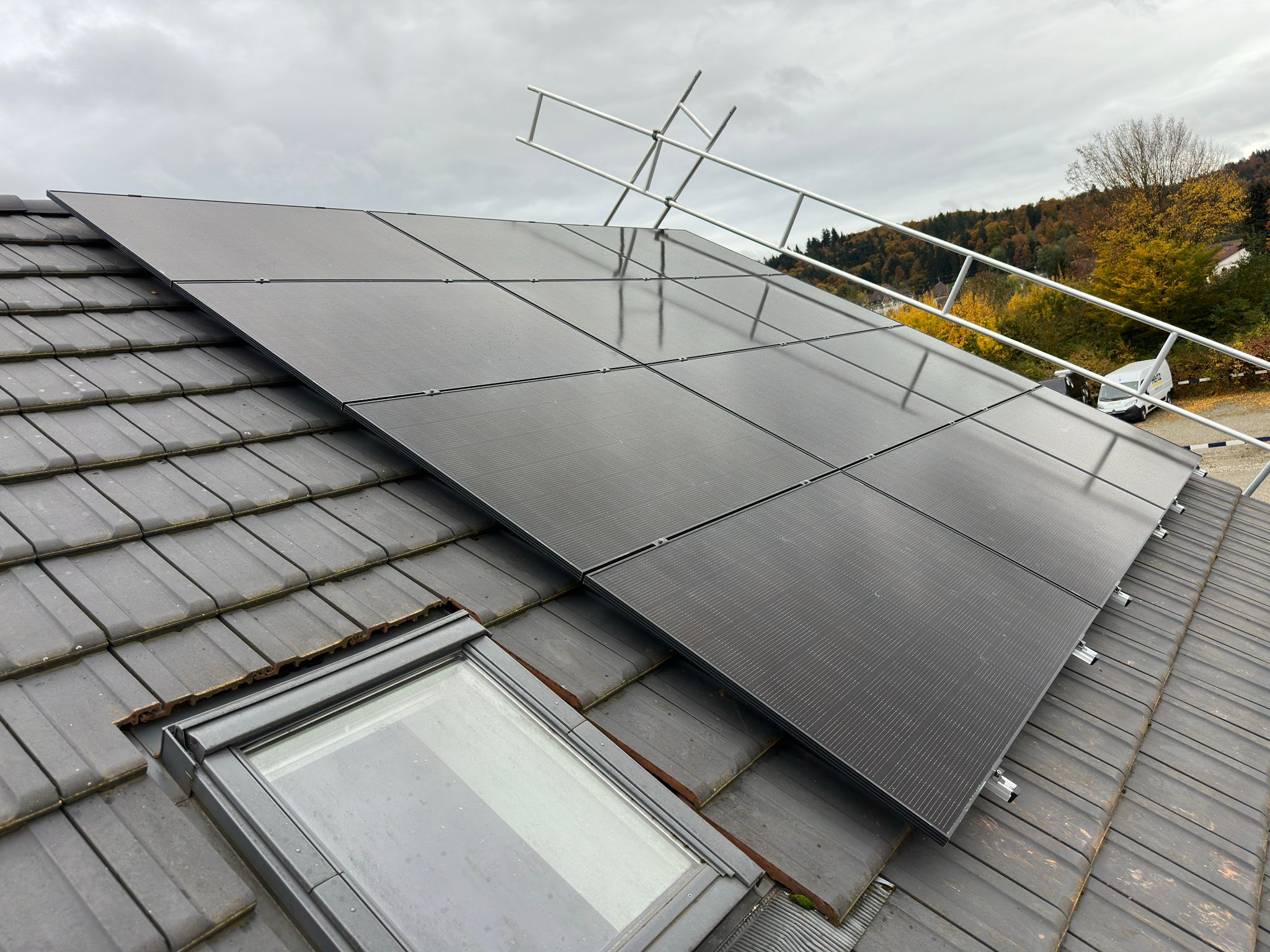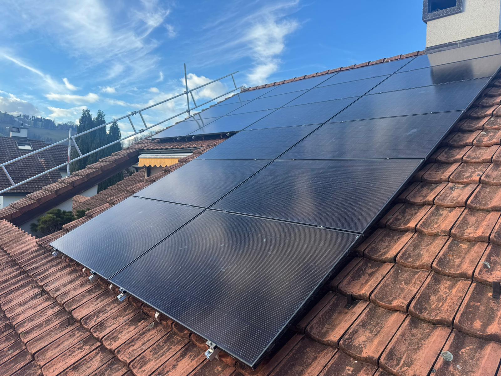 Von Ihrer Anfrage bis zur fertigen Anlage: 6-10 Wochen bei uns. Das läuft so ab: 4-6 Wochen Anmeldephase (Bewilligungen, Netzanmeldung, Material bestellen) 2-4 Wochen Bauphase bis zur Inbetriebnahme Die Montage auf Ihrem Dach selbst: 2-4 Tage Andere Anbieter brauchen oft 6-12 Monate weil sie erst Subunternehmer finden und koordinieren müssen.